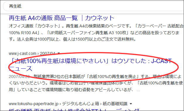 しかし、そんな言葉が本当かどうかよりも、各メーカーは今までとは違った紙を要求されているということは、確かだと考えたのではないかと思います。私が何回も書いている古紙入の紙 と 再生紙 の違いはここだと思っています。