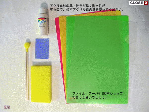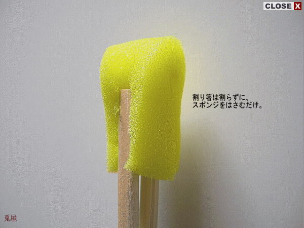 2005年1月24日2020年4月15日 57usagi ステンシルに挑戦 道具編 2005 安い材料で出来ます。(ステンシルセットは買うと高いので、兎屋では有り合せの材料でやっています。これで充分!) ファイル1枚・・・80円ぐらいスポンジ・・・100円ぐらい割りばし(未使用品)・・・家にありますね。 ステンシル用のスポンジを手作りします。2cm×5cm位に切ったスポンジを割ってない割りばしに、2つ折りにしてはさみます。 割りばしと、スポンジをセロテープで留めて、出来上がり。2~3本作っておくと便利です。 注)この記事は2005年1月24日(旧)兎屋ブログからの転載です。兎屋創業頃の状況を感じて貰うために転載しています。 共有: クリックして X で共有 (新しいウィンドウで開きます) X Facebook で共有するにはクリックしてください (新しいウィンドウで開きます) Facebook いいね 読み込み中… 関連