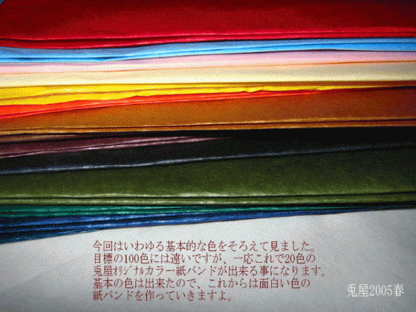 で、とりあえず新色としてベーシックカラーを作りましたが、本当のお楽しみはこれからですよ。アカだって一体何色のアカがあるのか???;-)考えただけでワクワクします。アカ系だけでも日本の伝統色/大日本インキ化学版:に依ると。珊瑚色、浅緋ウスアケ、薔薇色、薄紅、オールドローズ、灰桜、紅色、蘇芳色スオウイロ、薄蘇芳、唐紅花カラクレナイ、緋色、猩猩緋、深緋コキヒ、茜色、臙脂色エンジイロ、アズキ、朱、柿色、・・・・。きりがありません。