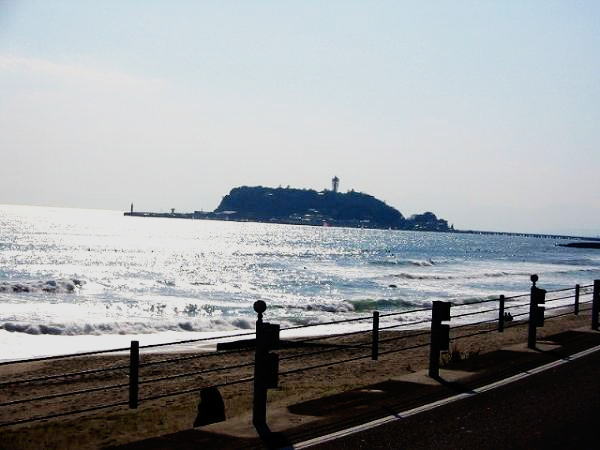 先週3/26(土曜日)用事で、横浜市金沢区六浦に行くことになりました。いつもお世話になっているオートバイ屋さんが残念なことに藤沢市から金沢区に引っ越してしまったのです。今までは15分のところでしたが、これからは1時~2時間かかるかな?、で天気も良かったので、カーナビ見たらどこもかしこも渋滞です。そこで裏道をフル活用して、取り合えず江ノ島は避けて、その先の「小動」:こゆるぎ と読みます: の交差点に出て、ゆっくり海岸を鎌倉方面へ、ふと振り返ったら、キラキラ光る海の向こうに、江ノ島が見えました。