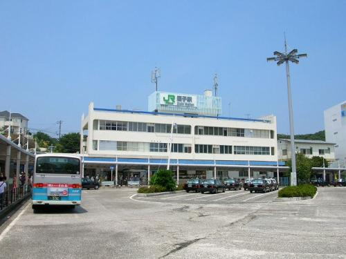 新逗子駅(京浜急行逗子線)周辺:逗子駅前の交差点に有る魚屋の脇をまっすぐ行くと、数分で新逗子駅に着きます。数分の間、商店街?を歩くのですが、あまり活気は見られませんね。無料で麦茶サービスをしているビーチパラソルがあり、老人が3人座っていましたが、多分その方たちが接待役なんでしょう・・・。しかし お話に夢中で麦茶を頂ける雰囲気では無かったですね。新逗子駅は小さい駅ビルに入っています。終着駅なのと、支線の為、この時間(私が乗ったのは12:30頃)人はまばらでした。あまりに暑い夏の午後なので、駅も、人もみんなぐったりでした。