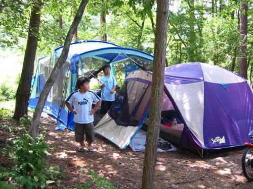コレが兎屋一家のキャンプスタイルです。家族キャンプのパターンは長男が1歳5ヶ月でデビューした時からほとんど変わっていません。設営するのはメインのテントとスクリーンテントです。どちらも「小川テント」の製品です。テントを選ぶ際のポイントはいろいろ有りますが。 居住性 価格 耐久性 運搬性能(コンパクト度) 対気候性 設営難度 等が選定の際の基準になろうかと思います。