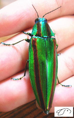 先週「足柄山の白くま」さん方にお邪魔し、クワガタワールドにタップリ浸って来ました。(クワガタの話は沢山有るのでその話題はまた別の日に・・・)その際、近くのクワガタポイントを数箇所教えて頂きましたが、台風の去った直後でもあり、クワガタをゲットすることはかないませんでした。しかし代わりに採集出来たのが「タマムシ」です。