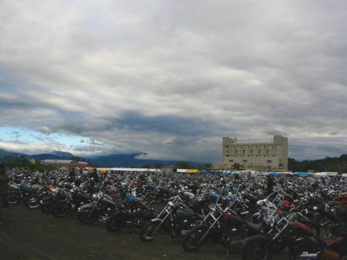 この「バイブズミーティング」各所でいろいろ物議をかもしています。けっしておとなしいオートバイではないし、乗ってくる人種の風体も「おや?」って言うような人達が多いのも事実です。・・・私も含めて・・・。会場近くの人達も楽しそうに見物に見えますが、中には迷惑に思ってる方もいるのだろうなぁと思います。事実キャンプ場では夜遅くまで騒いでいるグループもいます。それでもスタッフは地元市町村の方たちと1年以上前から話し合いを重ね、ボランティア主体で開催を続けています。
