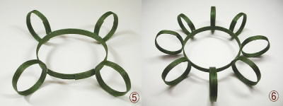 ⑤小さい輪を対角線上に接着します。⑥8個貼れた所です。(小さい輪の数は必ず偶数個です)