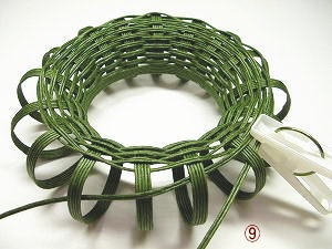 ⑨あみひもで編んで行く途中で、あみひもが足らなくなりましたら、つないで下さい。