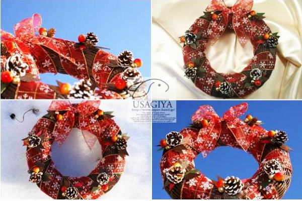 せっかくマスターしたリースのワザをクリスマス用だけにしておくのはもったいない・・・。もっと自由にあれこれ作らないとつまらないじゃないか!という事で、2月のリースを兎団メンバーの保土谷Iさんに作ってもらいました。