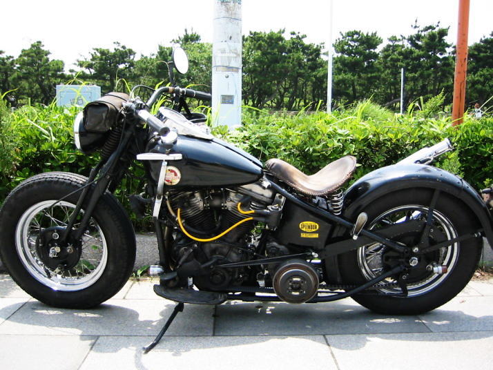店の前は日陰なので、夏用の粘度の高い#60番のオイルが入ってる私の1957年式は、ちょっと始動に手間が掛かります。気をつけて手順を踏んで掛けないと、プラグがかぶってしまい、しかも何回もキックするので右足がばててしまいます。2週間前、久しぶりにエンジンを掛けた時はうっかりしてかぶらせてしまい、小1時間ほどキックし続けていましたので、今日は気をつけて・・・でもオートバイがキンキンに冷えてるので、暫く日当たりの良い所に30分ほど置いて、キックしたら3回で掛かりました。本当は横着せずに冬用の#50番オイルに替えれば良いのですがね・・・。