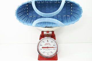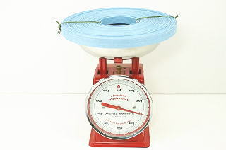 お客さんから頂くご質問で、割と多いのに「どれくらい必要ですか?」というのが有ります。もちろん作品を作る際の材料となる紙バンドをどのくらい準備すればよいのか?と言う事です。そういう時、兎屋では”秤”を持ってご説明しています。お客さんがどんな作品を作るかはわからないのですが、「例として」と言う事で話を進めています。