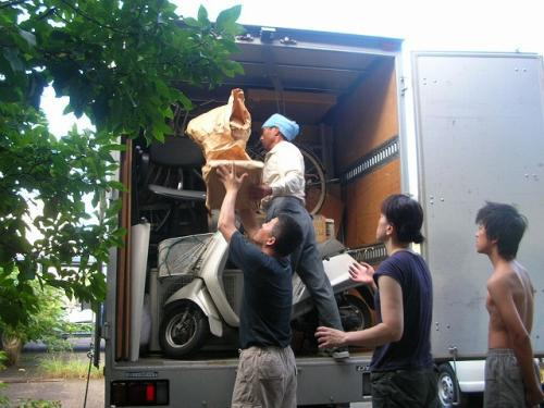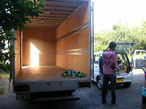 この30分ですが、お隣のガラス職人さん夫婦と、借家の大家さんが手伝って下さいました。ガラス職人さんは私と同じように、ここ黒潮町で起業なさろうとしてる方です。たいへん頑張り屋の方で何でもご夫婦でこなされます。・・・・私には出来ないかも・・・・。で 大家さんですが、この方が今回の兎屋移住のいろいろな関わりの中で一番お世話になった方です。今までの人生でたぶん居なかったタイプの方です。兎屋家族は皆、このM本さんが好きになっています。写真でトラックに乗って荷降ろしをされているのがその方です。