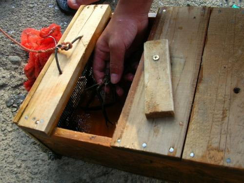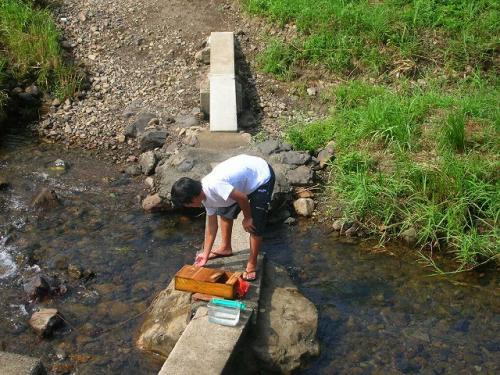 以前は大きなエビを狙って採っていましたが、食べるとなると5cm位の大きさの物が食べやすくおいしいようです。釣りや川での採集に興味の無い私も、手長エビのから揚げがだんだん好きになって来ました。シカケはほっといてもエビが入るので効率が良いですし、箱を開ける時のワクワクがエビ兄弟にとってはたまらないようです。採集が兄より下手な弟も黙々とシカケの準備をしたり、川の流れを見てどこに仕掛けようか考えていたりして、見ていて面白いです。