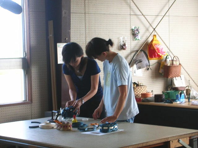 散髪もし、事務所の片付けもし、新しいゾウリに履き替えて待っていると、約束どおり13:30アナウンサーの長谷川さんと、カメラさんと、助手の方がやって来ました。さっそく長谷川アナウンサーに紙バンドの事を説明し、いよいよカメラ撮影が始まります。緊張はしていないのですが、やはりコメントを述べる場面になると時間や声の大きさや内容のまとめがうまく行かず、あせってしまいます。