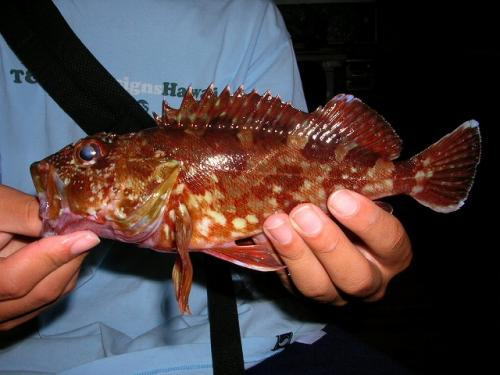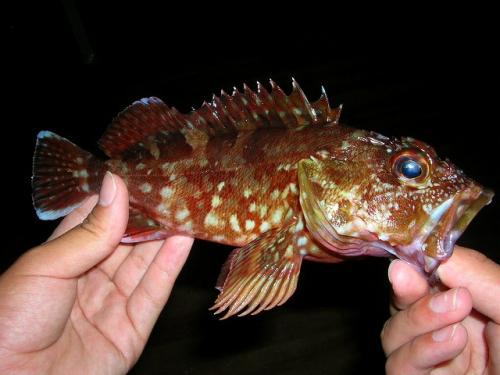 学校帰りに事務所に寄り、釣竿を担いで目の前の漁港に行くのが、最近の日課と成っていますが今日は寄りませんでした。事務所の窓から下校時間に数人の中学男子が漁港に向かっているのを見ていたので、ひょっとしたら一緒に行ってるかも?とは思いましたが、はたして、夕方暗くなって事務所に戻って来た中3男子の手には一尾のカサゴが有りました。初めて釣ったカサゴです。