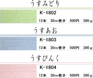 兎屋からのお知らせ。店舗販売と一部のご了解頂いた方に販売していたものです。かなり前に作った うすみどり うすぴんく うすあお の3色です。製造時に汚れが現れたので今まで一般販売をしていませんでした。当時は16本バンドで作り うすぴんく うすみどり のみ細々と販売していましたが、細く裂いて使うとあまり汚れが気にならないのと、お客さんの反響が良かったので、余った糸を使って12本バンドを作りました。