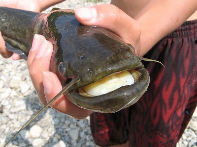 早速長男はナマズゲットです。とにかく執念がすごい!