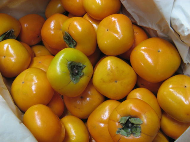 例年この時期は山形のラ・フランスをお取り寄せと言うのがパターンなのですが、今年はこれ!柿です。しかもこの柿「さわし柿」と言うそうで、渋柿に焼酎で渋抜きした物で、さっそく事務所の方にもお分けし、その場で頂きました。もちろん甘柿もおいしいのですが、この柿、予想していた味とは違い、果実の旨みと言うか、ほんのり甘くて上品な味です。