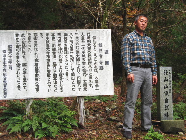 7合目に廃寺有り、ここまで来るのに45分。予想はもっと楽な山だと思っていたので余計疲れました。この辺りは杉、桧ばかりの山林でした。