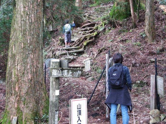 第一駐車場に車を置き山に入ったのが10時30分、約1時間で山頂に到着です。ずっと階段の整備道でしたが、坂がきつかったです。