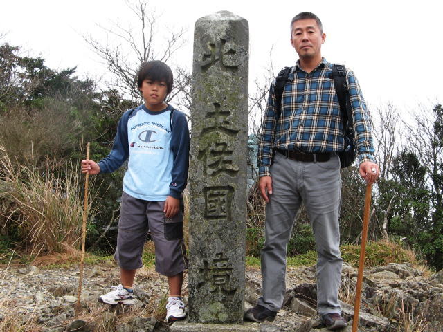三連休の中日、天気は晴れのはずだったのですが、あいにくの曇り空で、霧が出て来ました。これは伊予国~土佐国の境を表す石柱。