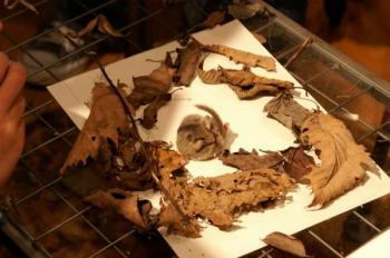開校式の日の夜、待ちに待った今回のメインイベント、本物のやまねに会える時間がやって来ました。12月やまねは冬眠中なのですが、なんと冬眠から起こすというのです。
