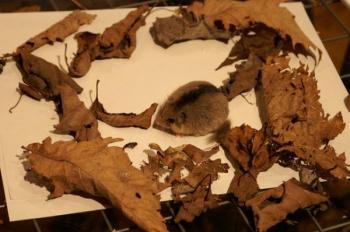 とにかく理屈抜きでかわいいです。暖かい部屋に来たのでもう身体が反応していてぴくぴくと動きながらゆっくりほぐれて来ています。丸い体がほぐれてくると顔が見えてきました。やまねのほんの小さな動きも見逃さないぞと皆2つのテーブルを行ったり来たり。ビデオもカメラもフル稼働です。身体がほぐれるとゆっくり寝返りをして、その愛らしい姿を披露してくれました。背中の一本線がまたかわいい。寝ぼけまなこのやまねは大勢の人間に見つめられてさぞびっくりしたことでしょう。でもしばらくはあまり動かずゆっくり観察させてくれました。先生のお話と、ほんの短い時間に体温を急上昇させて冬眠から起きたやまねを照らし合わせ、厳しい環境を生き抜くために備わっている不思議な生態に驚きとより一層の興味を持った私でした。