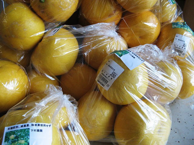 左:土佐文旦です。でもウチが買うのは地元の市場にでる文旦で、すごく安いです。大体50円センター/1個
