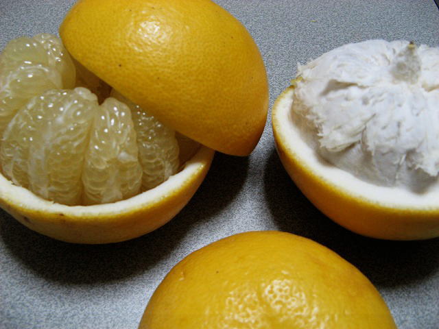右:文旦の剥き方をサイトで調べさっそく挑戦しました。この切り方は文旦しか出来ないようです