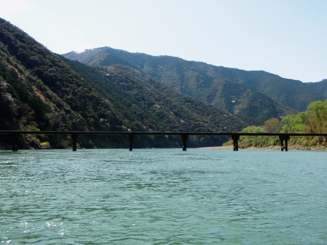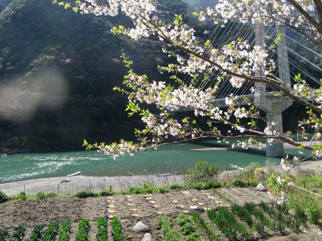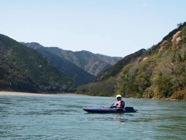 緊張でスタートしたカヌーツーリングも2~3ヶ所の瀬を越えると余裕が出て来ました。でまた戒め(イヤイヤこう言った時が沈する時、まだ気をつけなければ)・・・・・と思いつつ、緩やかの流れの所では、ボッ~~~として見ました。予報に反し曇り空でしたが暫くすると青空になり、時に風が止むと一気に春めいた川岸の風景が広がります。オートバイツーリングと違い、爆音のない世界。瀬では水音がしますが、ゆったりと流されて行けば風の音と鳥の音だけ・・・・・と思ったら、製材工場のマシンの音と村の有線放送の大音量が聞こえたりで、それはそれで四万十川の景色です。
