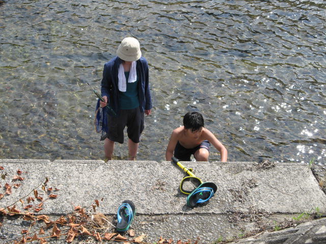そして何より泳ぐと言うより、川エビ等の採集が一番楽しいようです。一方、ウチの川男(長男)は友達と四万十川本流へ泳ぎに行きました。