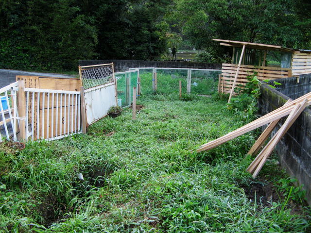 で、仕事を終えた夕方、ヤギ小屋の周りに柵を設けてちょっとしたフリースペースを作りました。小さな牧場見たいです。さぞやヤギさん大喜びだと思うのは人間の浅はかさ?広くなったからと言って、自由に動けるからと言って、安心していたら、いつもより大きな声で「メエ~~~~ッ」と鳴き続け、とうとういつもの定位置の軒下へ移動です。