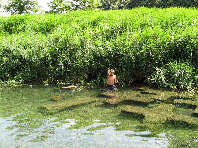 今日は仕事休みの土曜日、長男は馬術部6時半集合の為早く出て行き、次男も珍しく海で友達と泳ぐと言う事で出て8時前には出て行き、私は朝のヤギ散歩を済ませグダクダしていました。(う~~~んこのままウォーキングもせずに家にいるのも何だかなぁ・・・・)と思いながら、炎天下の道を歩こうか?今日はやめようか?どうしようか?と思っていたら、昼飯には次男も長男も帰って来て家族4人で食事を終えたところ、「後川に行かないか?」と長男。もちろん次男も「行こうぜ!」