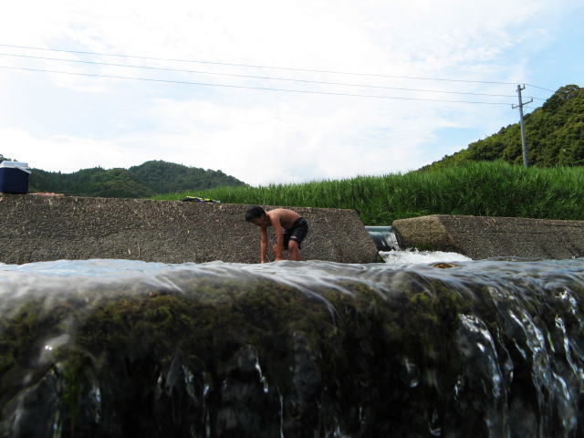 本当は川好きの長男ですが、幡多農業高校進学と同時に入部した馬術部が半端では無く、すっかり釣り&漁から遠ざかっていました。なので久しぶりのエビ突きは気合入りまくりで、本人はナマズも獲ろうと意気込んでいました。