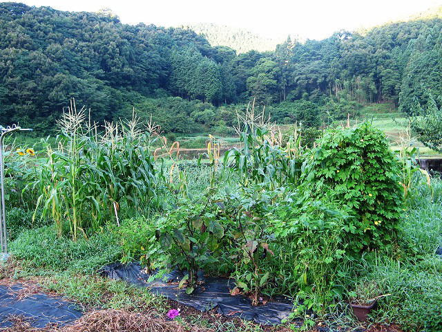 一昨日昨日と愛媛県四国中央市で開催の「紙まつり」に参加し、一夜明けて朝早い庭を観察しました。朝顔が咲き始め、ホテイアオイの花も涼しげな薄紫です。今夏の我が家の庭ではトウモロコシ、ニガウリ、ピーマン、ナスビ、オクラ、トウガラシ、スイカ、が元気よく育っていて、まさに収穫の時を迎えています。