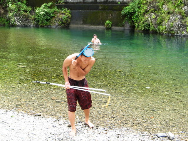伊才原でさんざん遊んだ後は、泳ぎと歩きを合わせて川を下ることにしました。(私は車で先回りし、下流からさかのぼって迎えに行きました。)自然のままの川をゆっくり流されながら、シュノーケルで川の中の風景も楽しむツアーです。これで都会から来た子供たちもすっかり川の虜になってしまいました。あと二日で高知旅行も終わりです、しっかり遊んで土産話と思い出を持って帰って貰いたいものです。