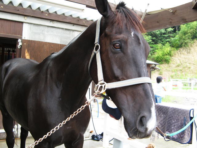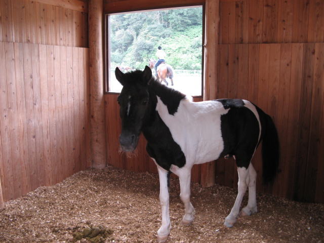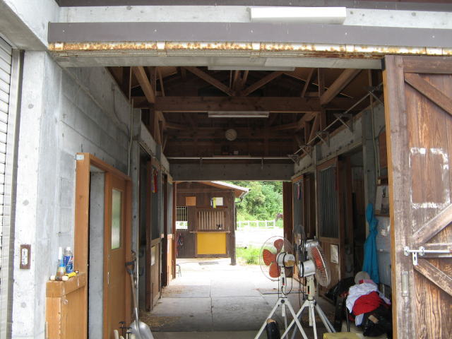 昨日用事で幡多農高へ行って来ました。休日なので生徒たちも少なく、気楽に目的の畜産棟へ行こうと思っていたら、畜産棟の前広場に沢山の生徒たちが整列しています。(実習かな?ジロジロ見られるのやだなぁ)と思ってそのままパスしたら自然に馬術部前に到着です。実習ならすぐに作業に入るだろうから時間調整も兼ねて馬術部見学をして見ようと、中へ入って行きました。