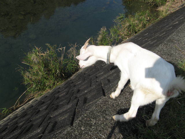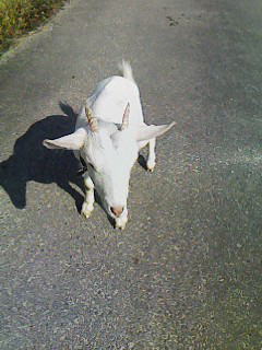 私の通勤路もヤギには未知の世界、私にぴったり寄り添って歩きます。