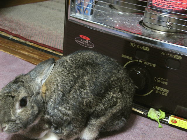 兎屋の兎もストーブの前に陣取ってお尻を温めています。兎屋にとってはこれも冬の風物詩です。相変わらず猫のような兎です。