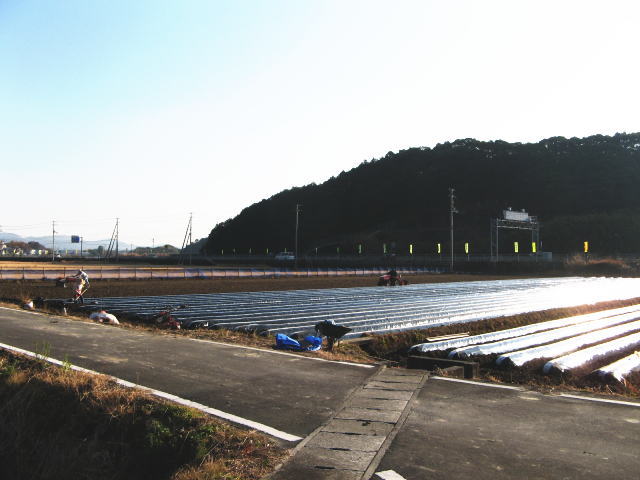 この畑は畑作物と米の二毛作をやって居て、去年秋も深まった10月の末にやっと稲の刈り取りをしていました。周りの田圃はさっさと稲を刈り、その後に「ひこばえ 二毛作は厳しい仕事です。いくら気候が温暖で昔から二毛作、二期作が盛んとされている高知県でも二毛作や二期作は労力に比して収穫が少なく、化学肥料による土壌コントロールが難しいので、あまり取り組んでいる方は多くないようです。で、その畑を通り過ぎる時に、ふと気になって軽四トラックの荷台に積んであったマルチの梱包を見、その製造元会社の名前を見た瞬間、20年以上前の記憶が蘇りました。もう忘れていた会社の名前です。20年以上も時が過ぎ、遠い高知県で、昔訪問したその会社の応接間の風景が思い出されました。そうか・・・あの会社の製品が、このような場面で活躍してるんだなぁ・・・・。新年早々初出勤の道で見た風景、やる気が出たのでした。