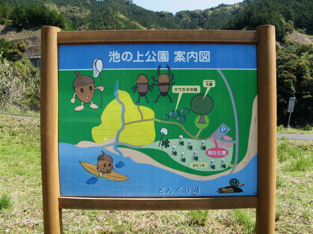 「池の上」公園は昔の集落後に造られた公園で、広い駐車場と造成中のクワガタの森、そして名前だけの”はらっぱ”は湿地帯と化していました。人間が作ったダムの為に沈む集落へのせめてもの誠意がこのような公園を提供させたのでしょうが、一番印象的だったのは、昔からそこの植わって居た「榎」の大木でした。