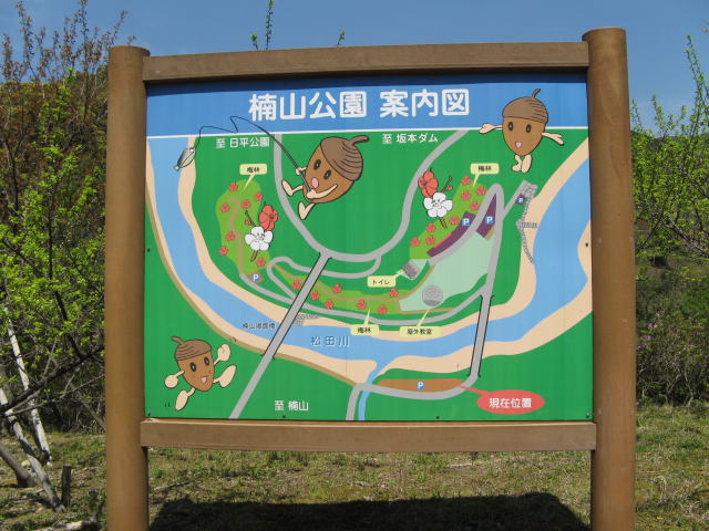 「池の上公園」を後にし、少し上流にある「楠山公園」へ行って見ました。山の中腹を走る県道のから集落を抜けて下って行くと、これまた広~~~い駐車場と、きれいに舗装された道路が現れました。このあたりはダム湖にはなっておらず、川の流れが有りましたが、廃校になった小学校があり、やっぱりさびしい風景でした。