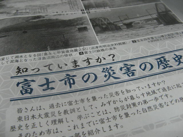 と言う事で、この日曜日は一日中家でごろごろ、ヒマなのでポストに入っていた「広報ふじ」をめくって見ると・・・・あぁなんと「富士市の災害の歴史」という特集が組まれていました。