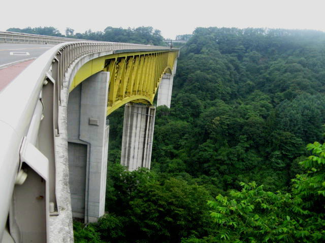 橋の歩道部分を歩いて見ました。あまりに高所にあるので足の甲がゾクゾクします。高所恐怖症じゃないと思っていたけど、ちょっと怖いです。それにしても「八ヶ岳高原大橋」はすごいぞ!日曜日と言う事もあり交通量もあります。今日は曇りだったけど晴天の日にはくっきり八ヶ岳が見えるそうです。