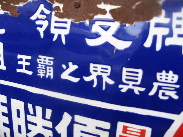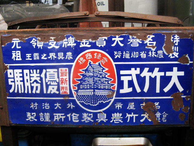 機械に付いているホーロー板はレトロ感いっぱいです。当時としては最新式のマシンで、ハイテクでしょうか。それに「農具界の覇王」というキャッチコピーは自信にあふれています(すばらしい!)