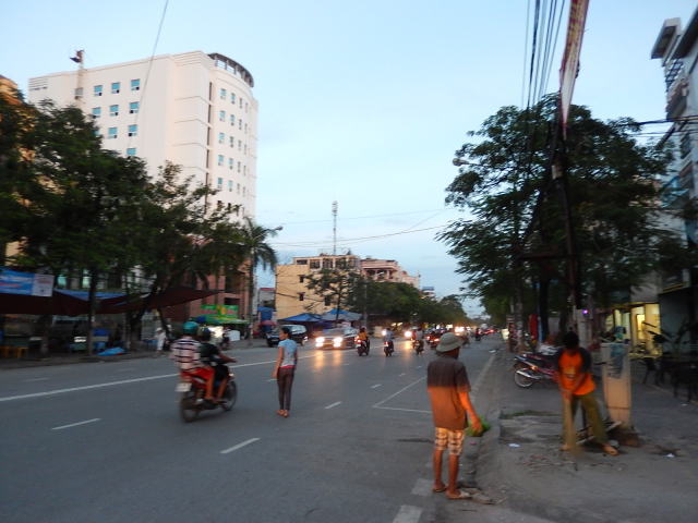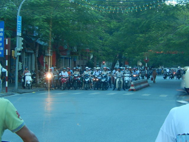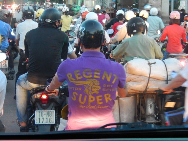 とにかく恐ろしい運転と環境です。道いっぱいにたくさんのオートバイがかなりのスピードで走ります。中にはゆっくり走るオジーサンもいますが、ほとんどの方が誰よりも先に出ようとしていますし。車との距離は10cm以下は当たりまえ、時々軽く接触します。一方通行無視や信号無視も当たりまえ?基本信号の数が少ないです。なので、道の横断には気合がいる・・・・・と思うのですが、ベトナムの方は当たり前にさっさと渡るのです。そういえば街灯の数は少なく、有っても薄暗いのですがそんな闇の中をかっ飛ばし消えて行きます。