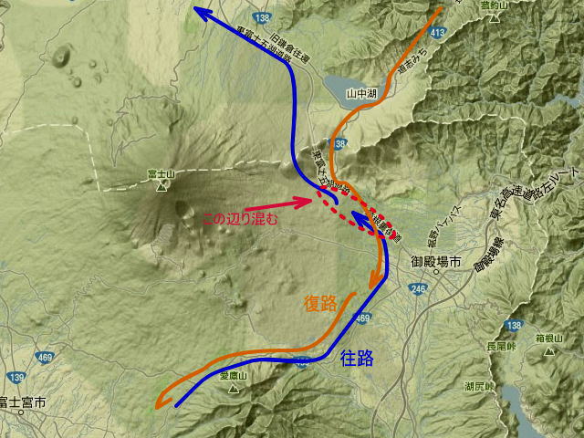 さて、N君ちでワイワイやって一夜明けると、早速帰りツーリングです。するとN君が「道志は良いですよ」なんて言うので、あぁ27年振りの道志道(国道413)を走る事にしました。帰りは福生市~圏央道~中央道~相模湖~県道76~道志みち(国道413)~山中湖~籠坂峠(国道138)~仁杉交差点~東富士演習場~十里木~富士市 福生から休まず走って3時間の行程。あぁ涼しかった!