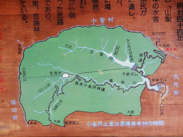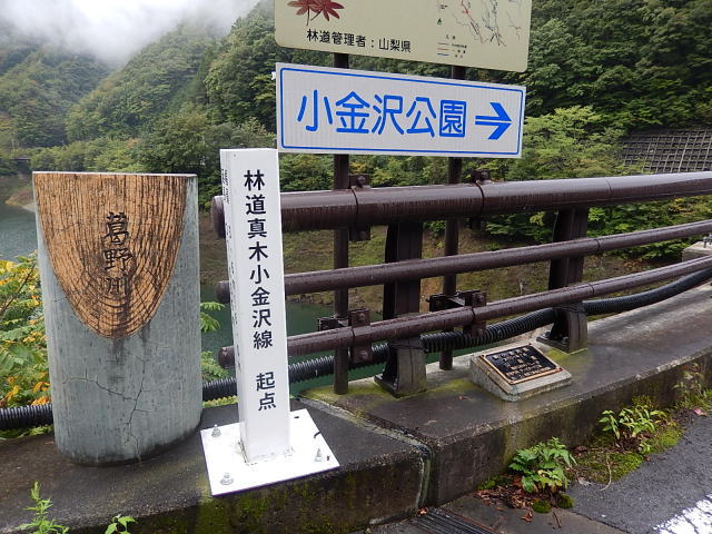 松姫峠から国道139を下って大月方面へ向かうと、その真木小金沢林道の分岐に出るのですが、降りて行くとなんだか大がかりな工事をしています。何年後かには松姫バイパスが開通し、大月市から小菅村への道が便利になるという事です。でしばらく行くと見慣れない湖が???しかも林道真木小金沢線起点なんて書いてある。20年以上来ないうちにダムが出来たりトンネル工事が始まったり・・・・・浦島太郎になった気がしました。20年数年前はトンビになった気がしたのにね。でも松姫峠は昔のままでよかったなぁ。