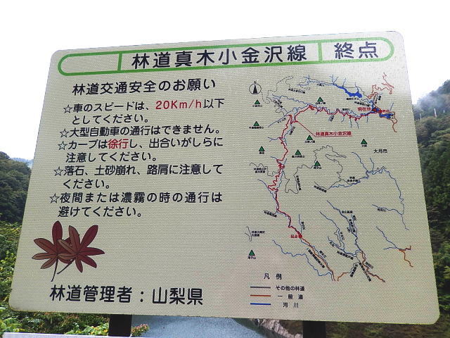 さっき峠で見た木製看板に懐かしい文字がありました。それは「真木小金沢林道」・・・・おぉ!これも懐かしい!この林道は20代後半から30代に掛けて何回も走った道ですし、途中の小さなダムの上で飯を食べたり、空き地を見つけて野宿をしたりしていました。