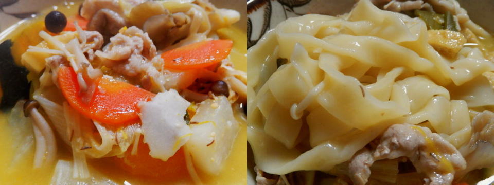 見た目は「うどん」系の食べ物ですが、煮込んでも大丈夫、ほうとうはしっかりとした麺です。