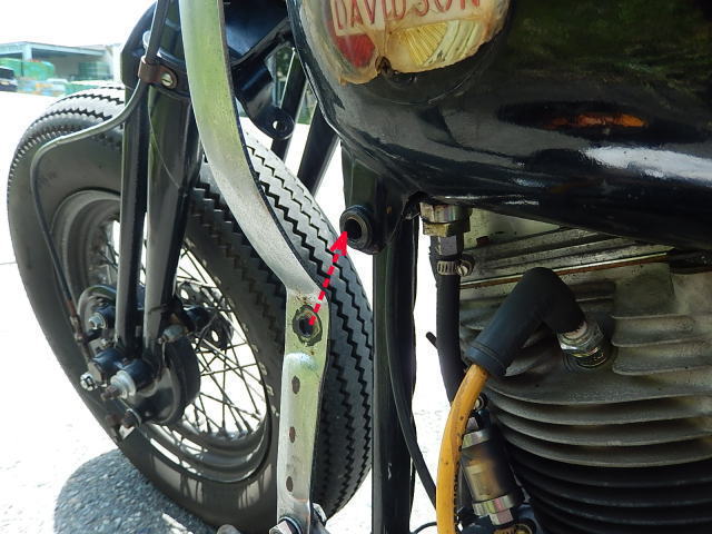 チェンジレバーとタンクを繋ぐ位置にある支点のボルトが飛んで行ったのだから、何か突っ込めばいいかな?と工具セットなどをかき回して見ましたが良い金具が見当たらないので試しにU海君に電話して見ました。すると「あぁそのボルトありますよ、すぐに持って行ってあげますよ」と言う事で待つこと20分、ナックルヘッドに乗ってニコニコU海君の登場となったのです。まぁ普通は持っていない部品だけれど富士宮の人達ってなんだか持ってんだよねぇ~アリガタヤ・アリガタヤ・・・