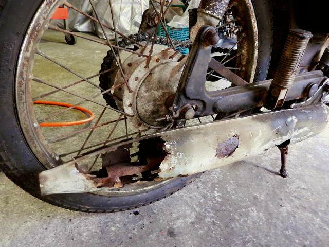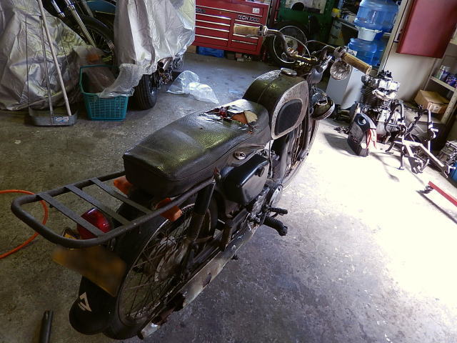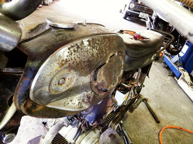 見た瞬間、おぉ~ S君も一線を越えたな、見たいな相当やれたオートバイです。どうやら茨城県まで行って○万円で持って来たそうです。で、これ直すんだよね?と尋ねたら、昨夜はいつもの集会 に一人でコレに乗って行ったのだそうです。